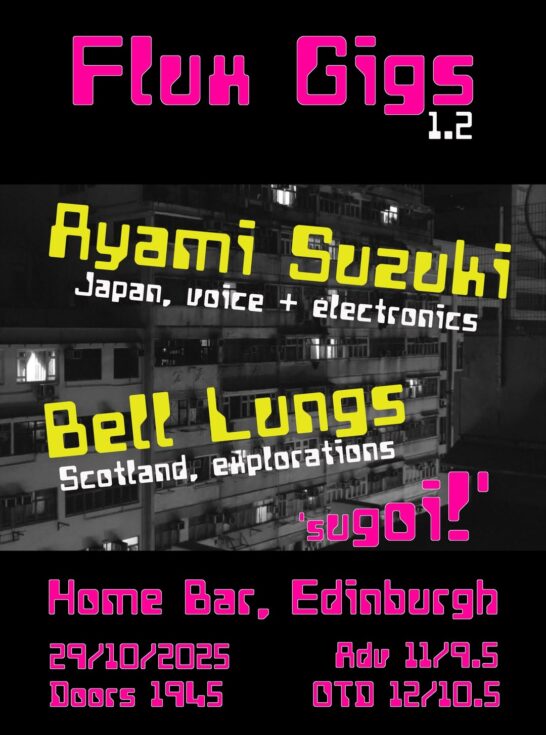 Home Bar Flux Gigs 1.2 – Ayami Suzuki / Bell Lungs Date: October 29, 2025 Time: 7:45 pm Location: Edinburgh, UK Venue: Home Bar